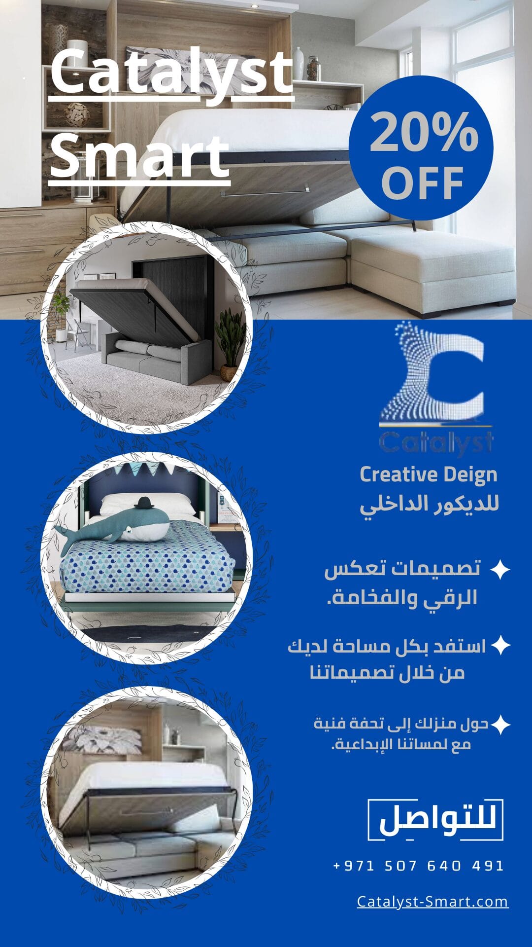 تعد شركة ( Catalyst-Smart.com ) واحدة من الشركات الرائدة في مجال الأثاث الذكي في دبي، وتساهم في تطوير هذه الصناعة في المدينة. تقدم الشركة العديد من الحلول الذكية في مجال الأثاث، أبرزها السرير الحائطي، الذي يعد واحدًا من أكثر المنتجات ابتكارًا في السوق.